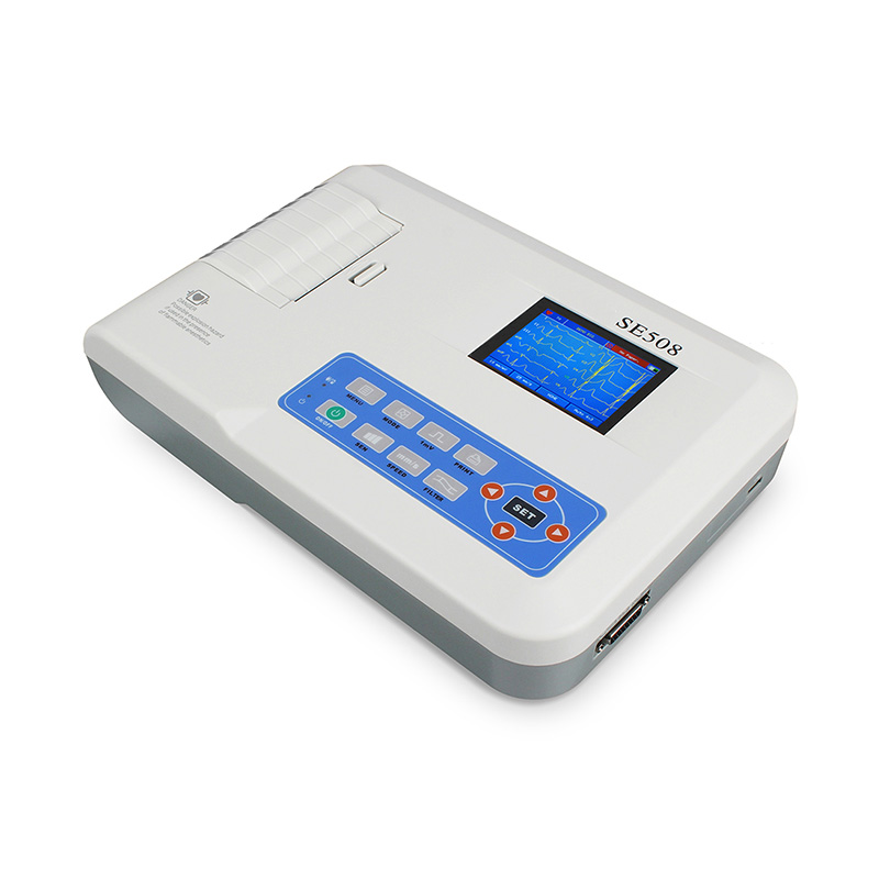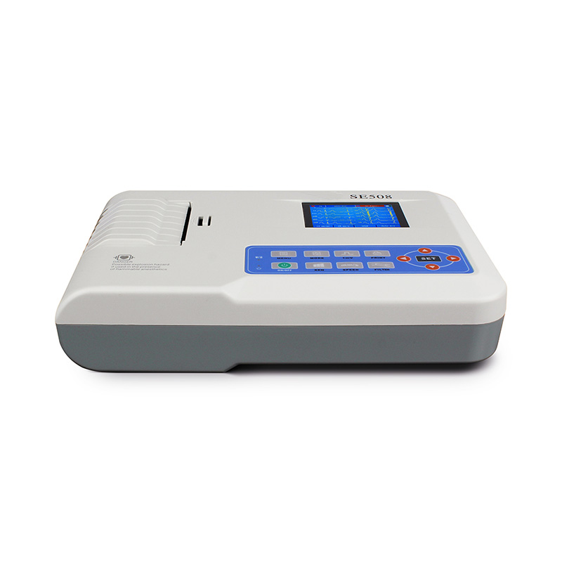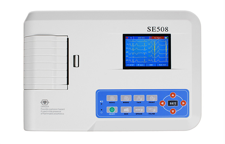 The 3-Channel Electrocardiograph SE508 Vet is a compact, portable veterinary ECG device with a 3.8-inch color display and built-in thermal printer. It supports 12-lead ECG acquisition, displays 3 synchronized channels, and offers manual/automatic operation modes with auto-analysis for quick diagnostics. With 1,000-case memory storage, interference protection, and a rechargeable lithium battery, it ensures reliable, on-the-go cardiac monitoring for animals.● Sharp and Clear 4.3 inch TFT screen
